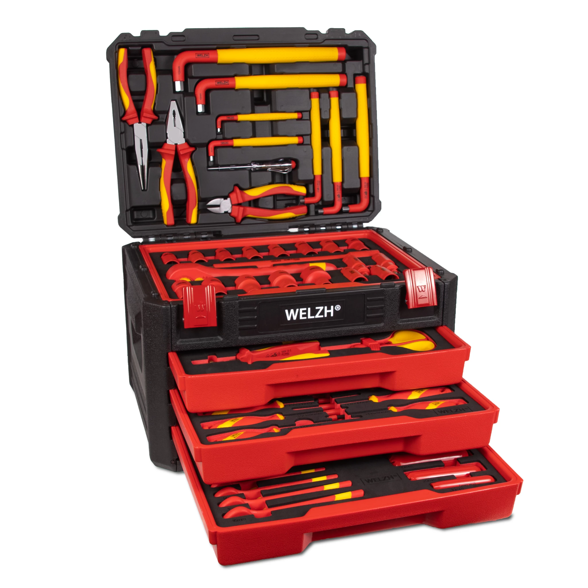 Welzh Werkzeug 4961-WW VDE 1000 V-os szigetelt szerszám készlet hibrid autókhoz, 63 részes *