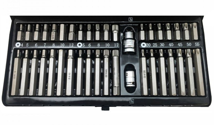 14 db torx bit, rövid és hosszú: T20, T25, T30, T40, T45, T50, T55